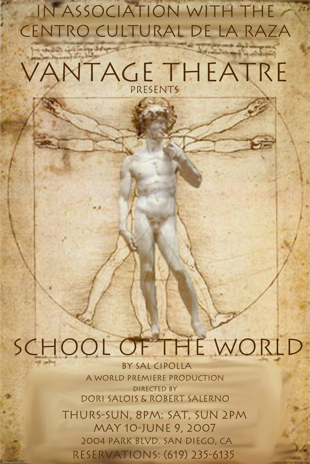 SAN DIEGO– Artistic Director Dori Salois announced Vantage Theatre’s 2007season. “We are excited to offer two world premieres of significant new works by playwrights who are not afraid to confront Big Ideas.” The first production is slated to be School Of The World, by Sal Cipolla. This play draws upon a remarkable event in Renaissance history. In 1503 the two leading artists of the Florentine Renaissance were commissioned to paint giant murals in the same room of the Palazzo Vecchio. They were known to have an intense public rivalry. The play speculates about what might have happened in that room, and why both murals were mysteriously left unfinished. It also examines critical questions about the relationship of art, power, religion, and politics. It will be directed by Salois and Artist In Residence Robert Salerno.