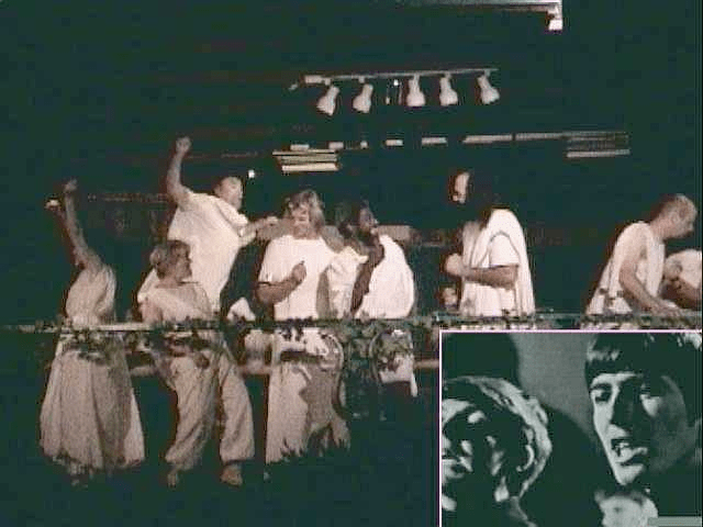 Drugs go hand in hand with the world of Rock and Roll, and Dionysus has a few tricks named pot, pills, and LSD up his toga. On earth, Dionysus is abetted by Orpheus’ musically untalented, brother, Aristaeus. His timing just right, Orpheus enhances the Age of Aquarius, spouting brotherhood and love. The playwright’s video takes us to Woodstock, with clips of Jimi Hendrix and the Grateful Dead (how apropos.